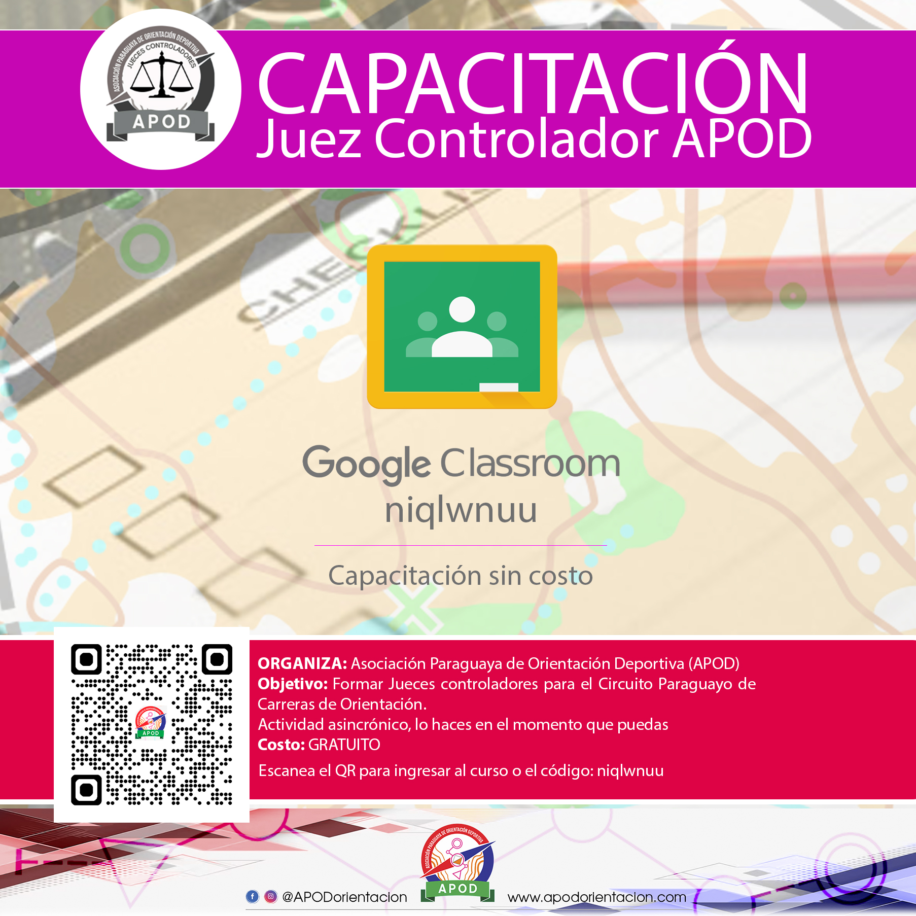 La Asociación Paraguaya de Orientación Deportiva (APOD) pone a disposición el curso Juez Controlador APOD en Google Classroom.